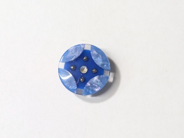 1月のボタン(秘色) 【価 格】693円(税込価格です) 【素 材】樹脂 【サイズ】23mm 【 色 】ブルー ※雪と氷をイメージさせる美しいデザインのボタンです。ブルーと淡いブルーの色合いが星形にも見える洗練されたルックスを演出。中心にあしらわれたラインストーンが、凛とした雰囲気を際立たせます。 ※サイズ展開として、他に15㎜(¥495)がございます。 →https://mutsumiya.base.shop/categories/7150998 CATEGORYから「特集ボタン」→「1月のボタン(秘色)」を選択していただくと、表示されてきます。