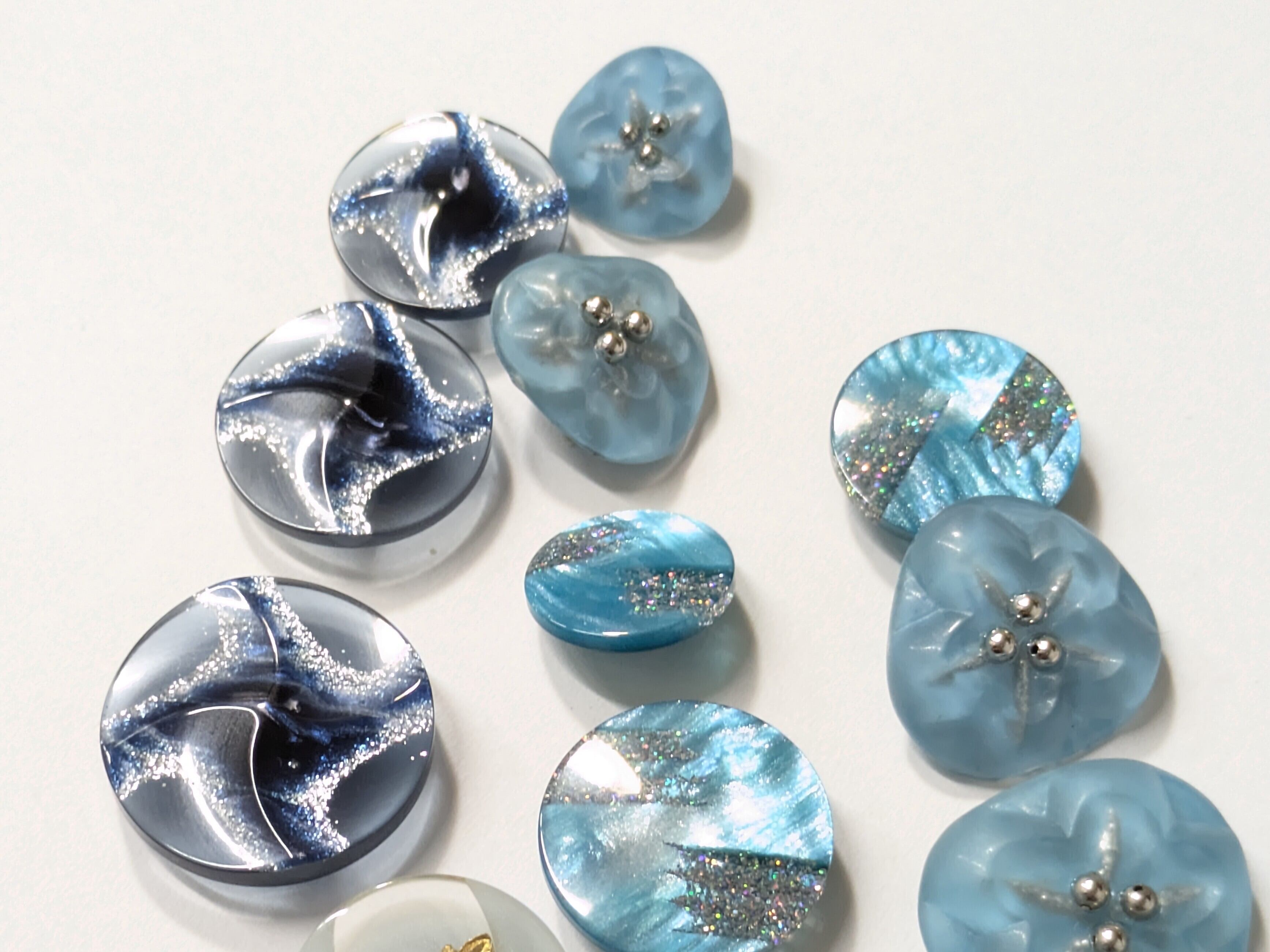 CATEGORYから「特集ボタン」→「8月のボタン(なないろ夏)」を選択していただくと、表示されてきます。