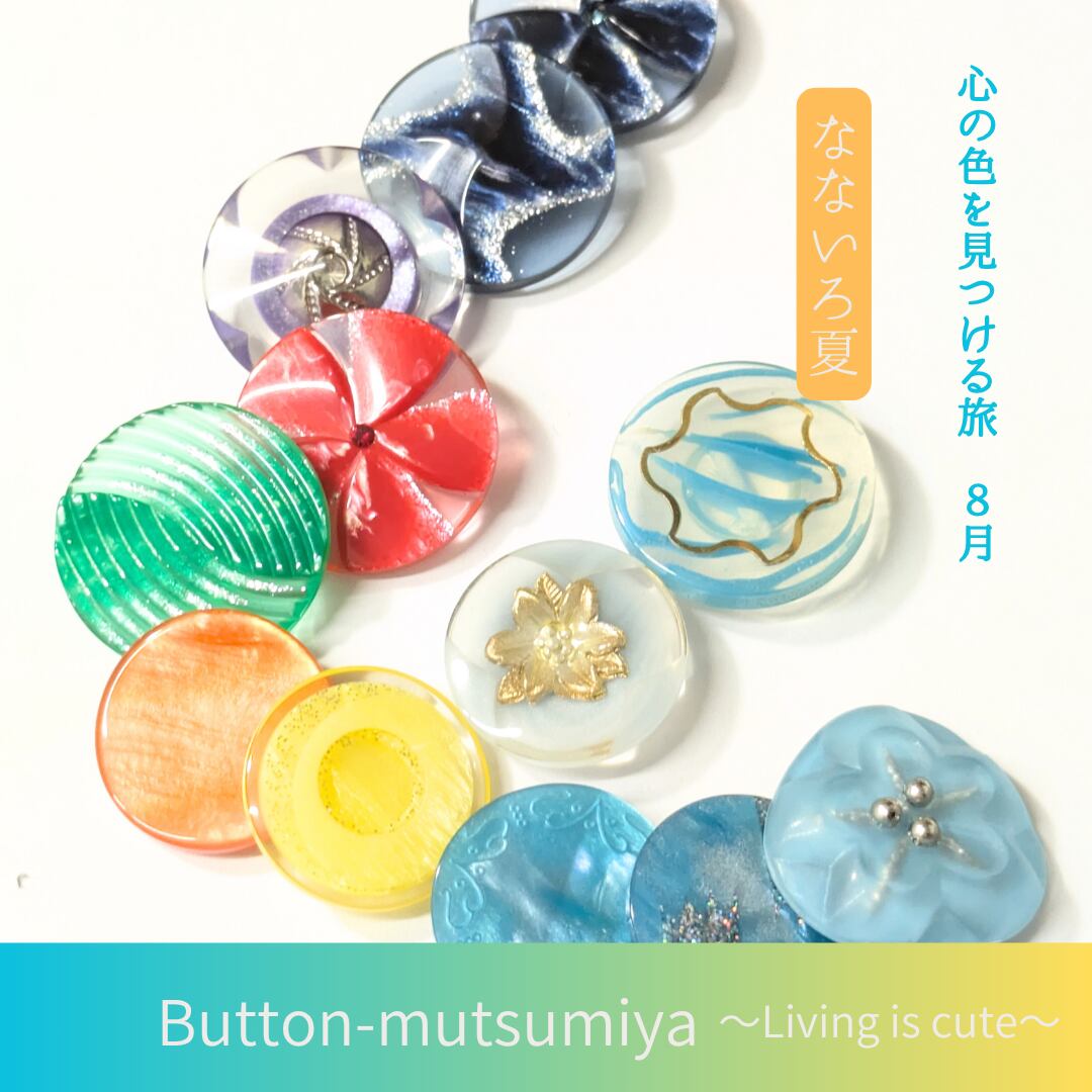 CATEGORYから「特集ボタン」→「8月のボタン(なないろ夏)」を選択していただくと、表示されてきます。
