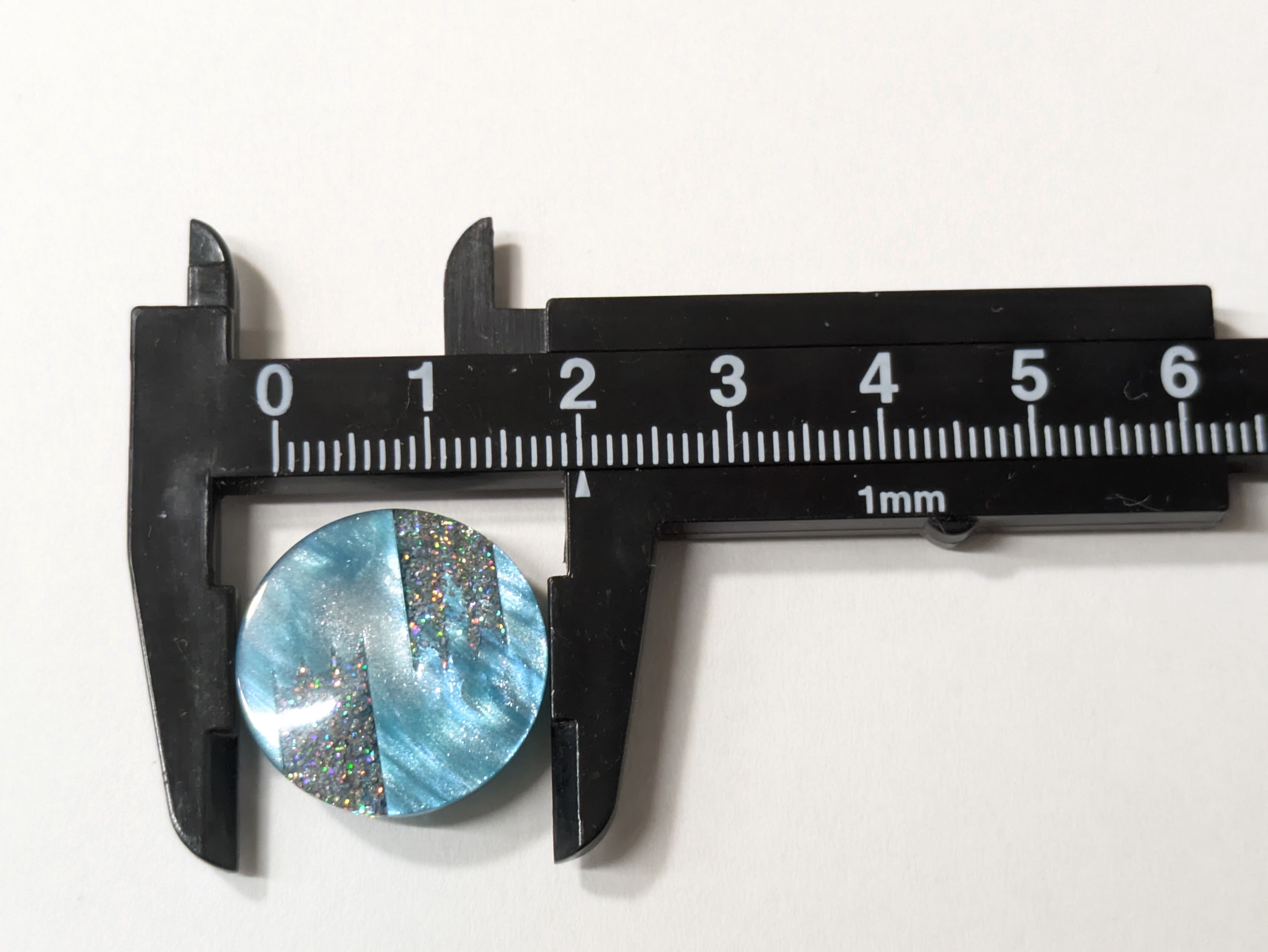※ターコイズブルーとシルバーラメが織りなす魅力的なデザインのボタンです。自然の鉱石のように光によって様々な表情を魅せるため、どんなアイテムにも華やかさをプラスします!