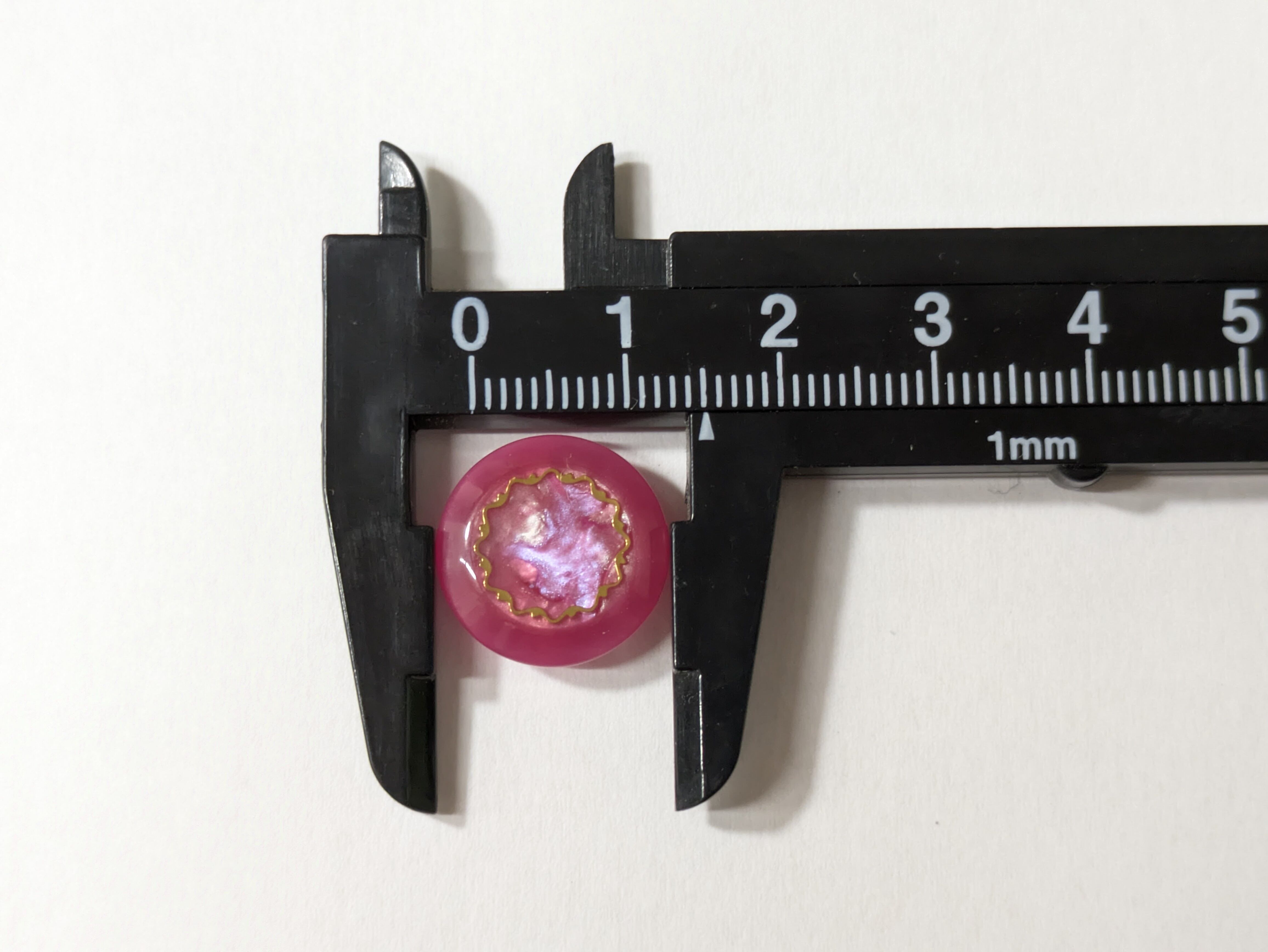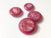 ※濃いピンクをベースに、紫や薄いピンクが大理石のように美しく模様を描くボタンです。お花のような繊細なゴールドリングが表情豊かに魅せ、どんなコーディネートにも華やかさをプラスします。