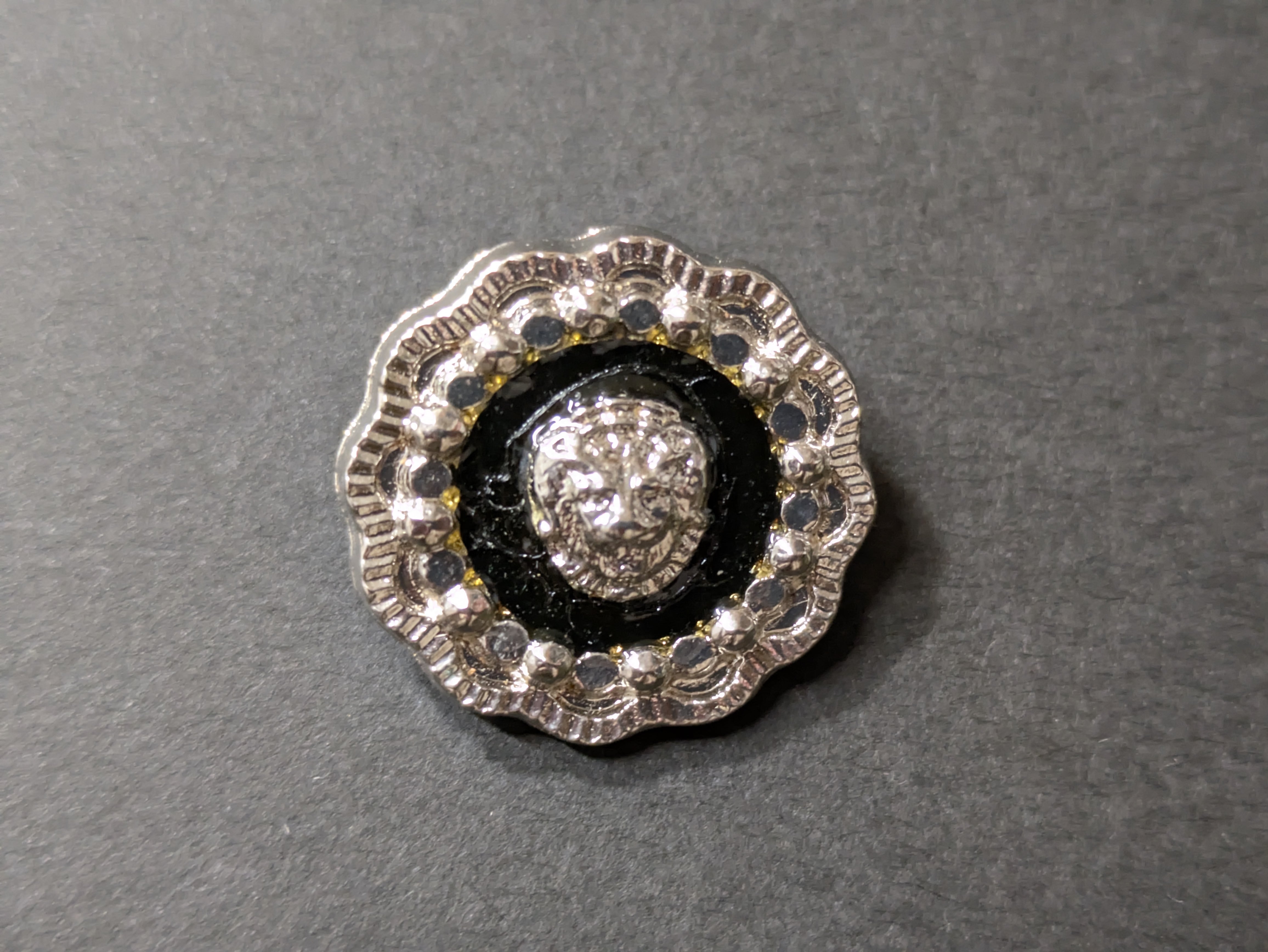 ※シルバーベースにブラックのエナメルが映え、中央には堂々としたライオンが鎮座するデザインが特徴です。波型と細かい刻み模様のエッジがその雄々しさを引き立て、アイテムに高級感を与えます。
