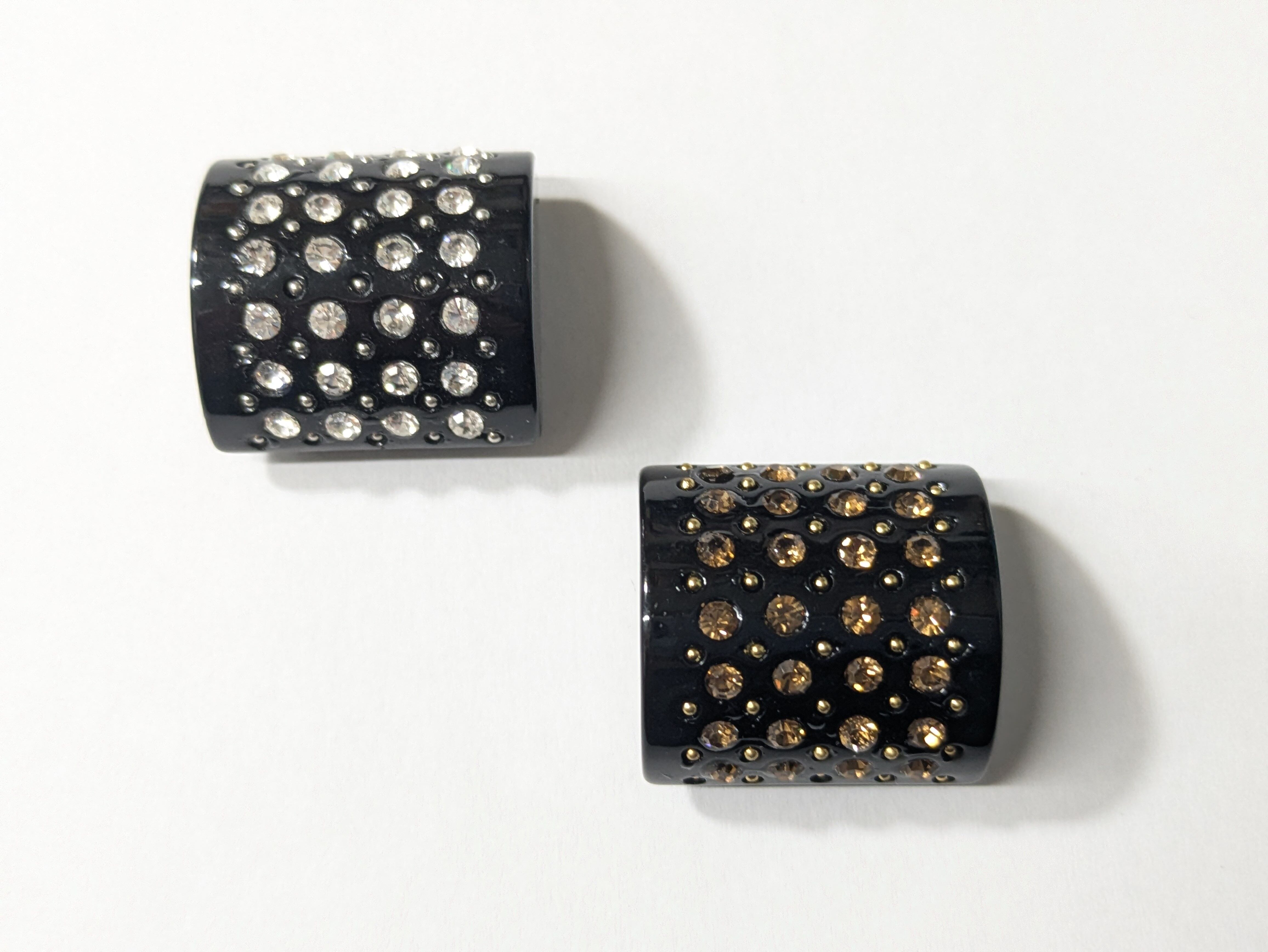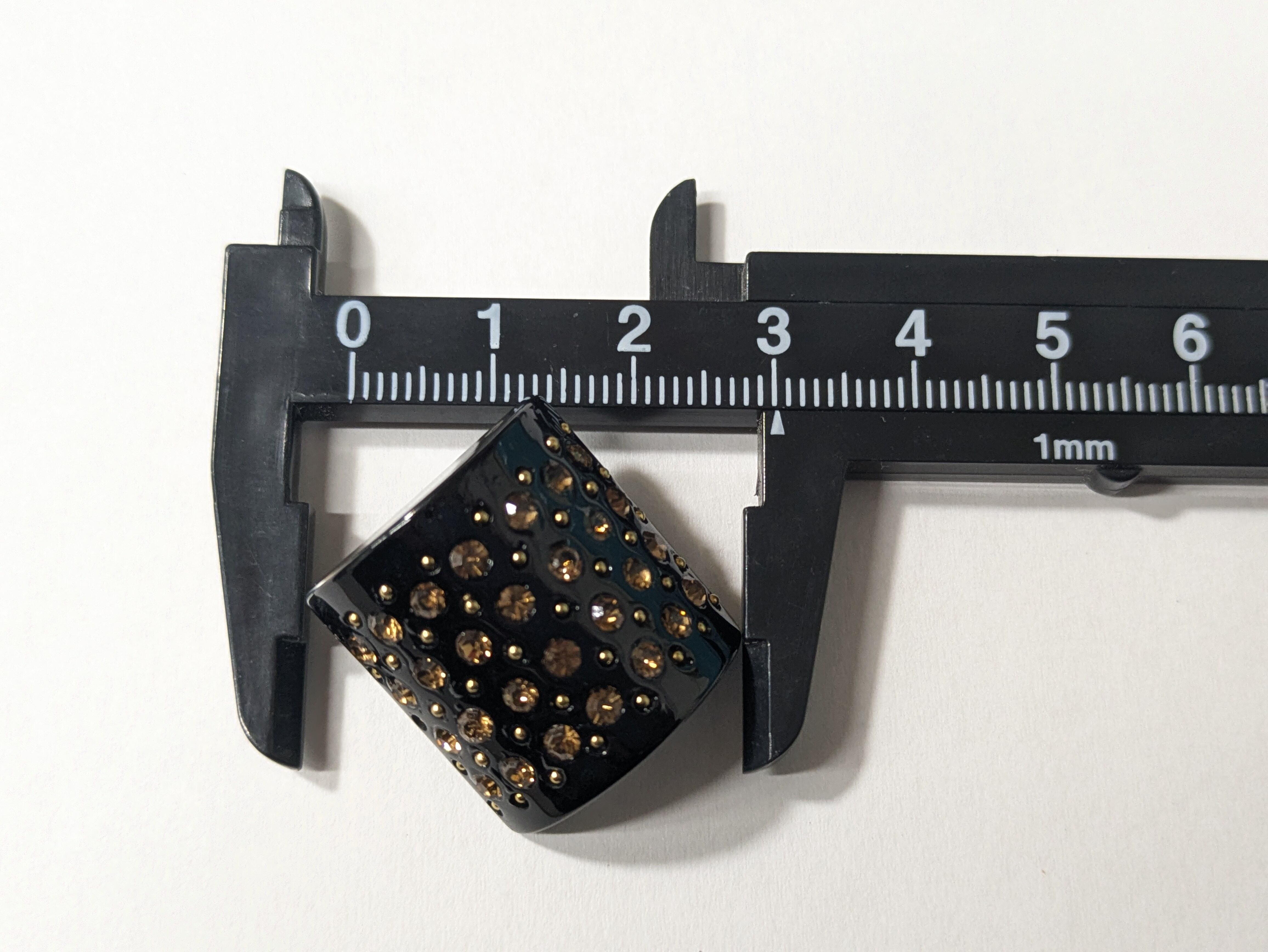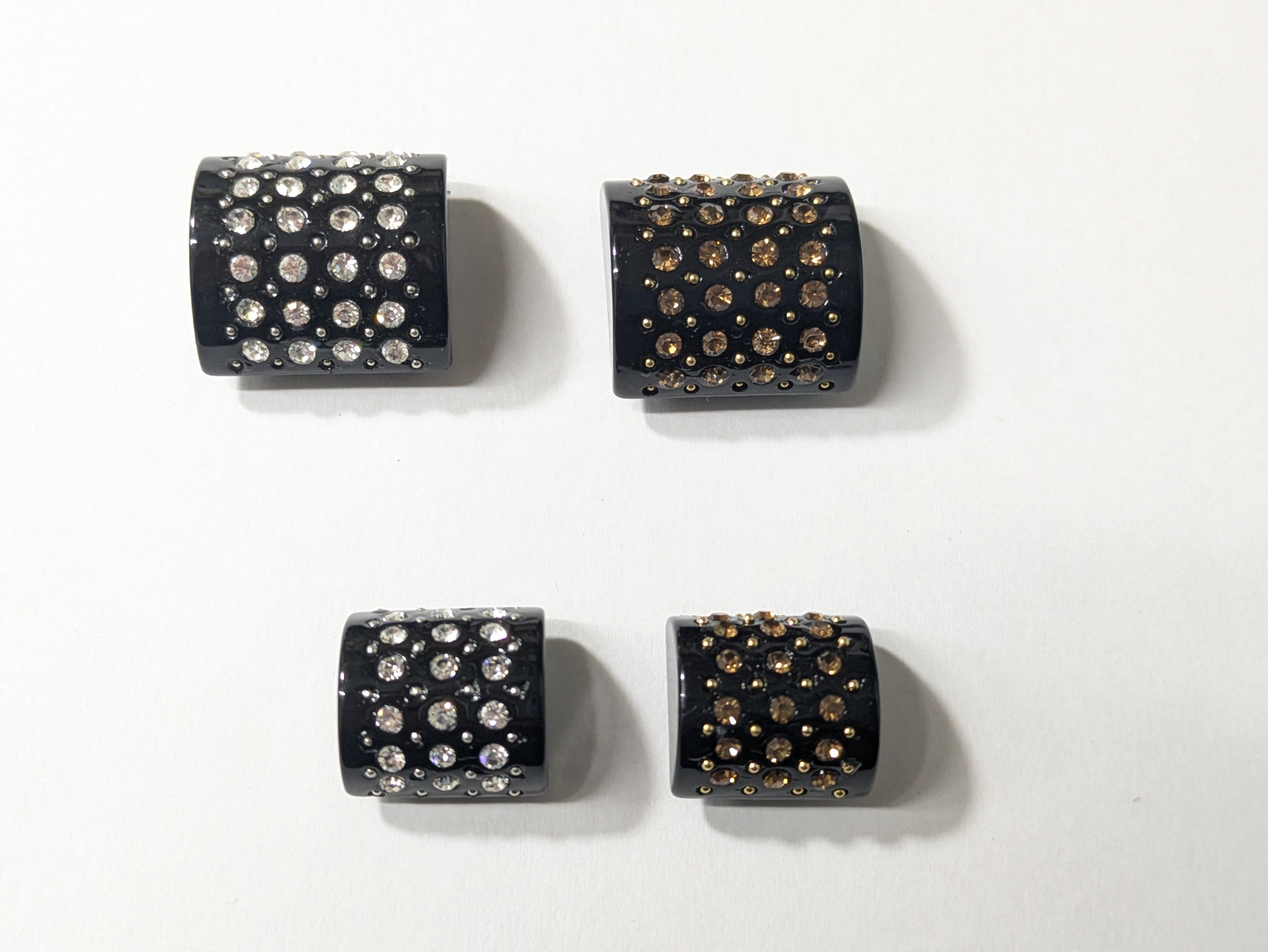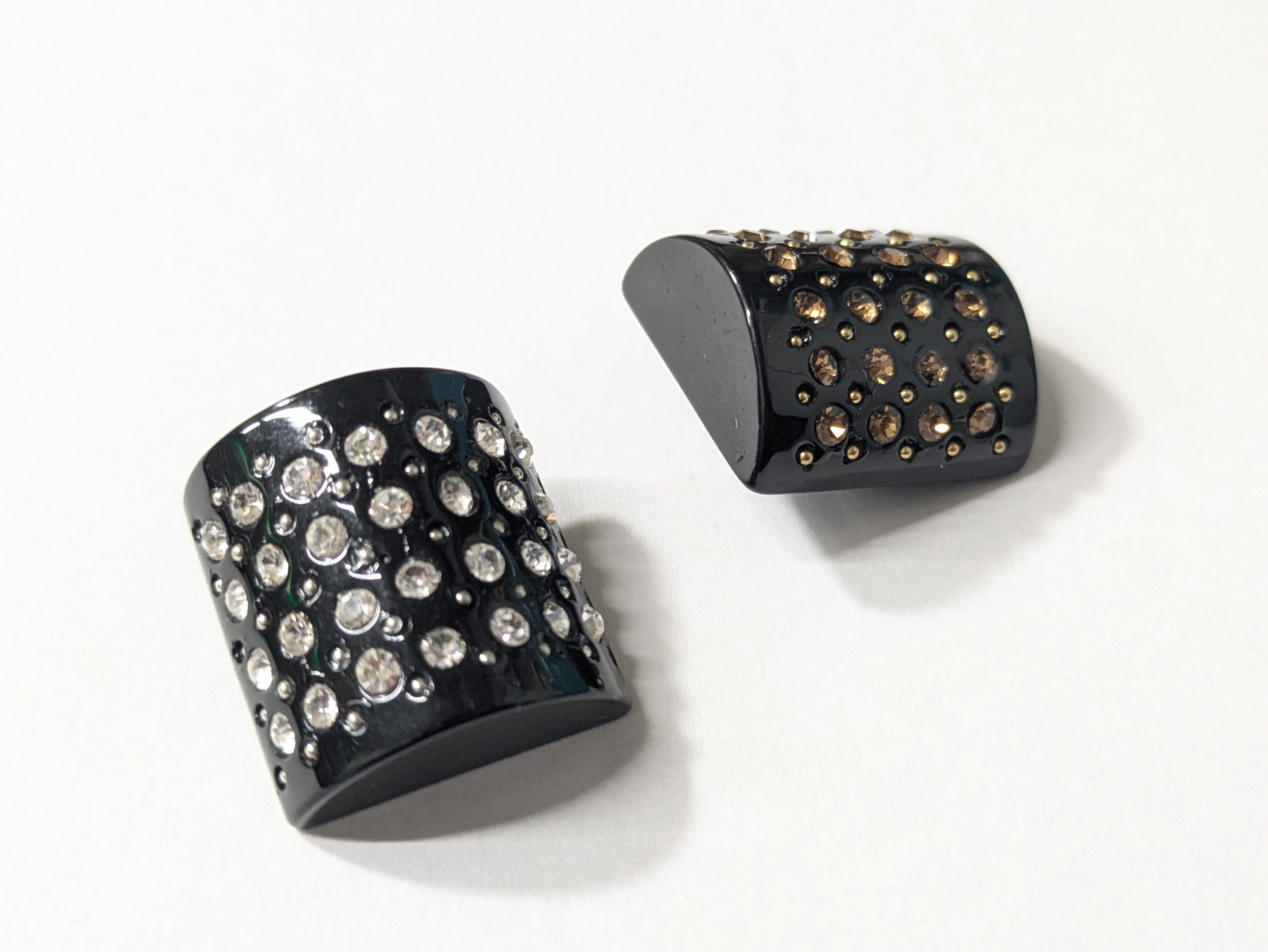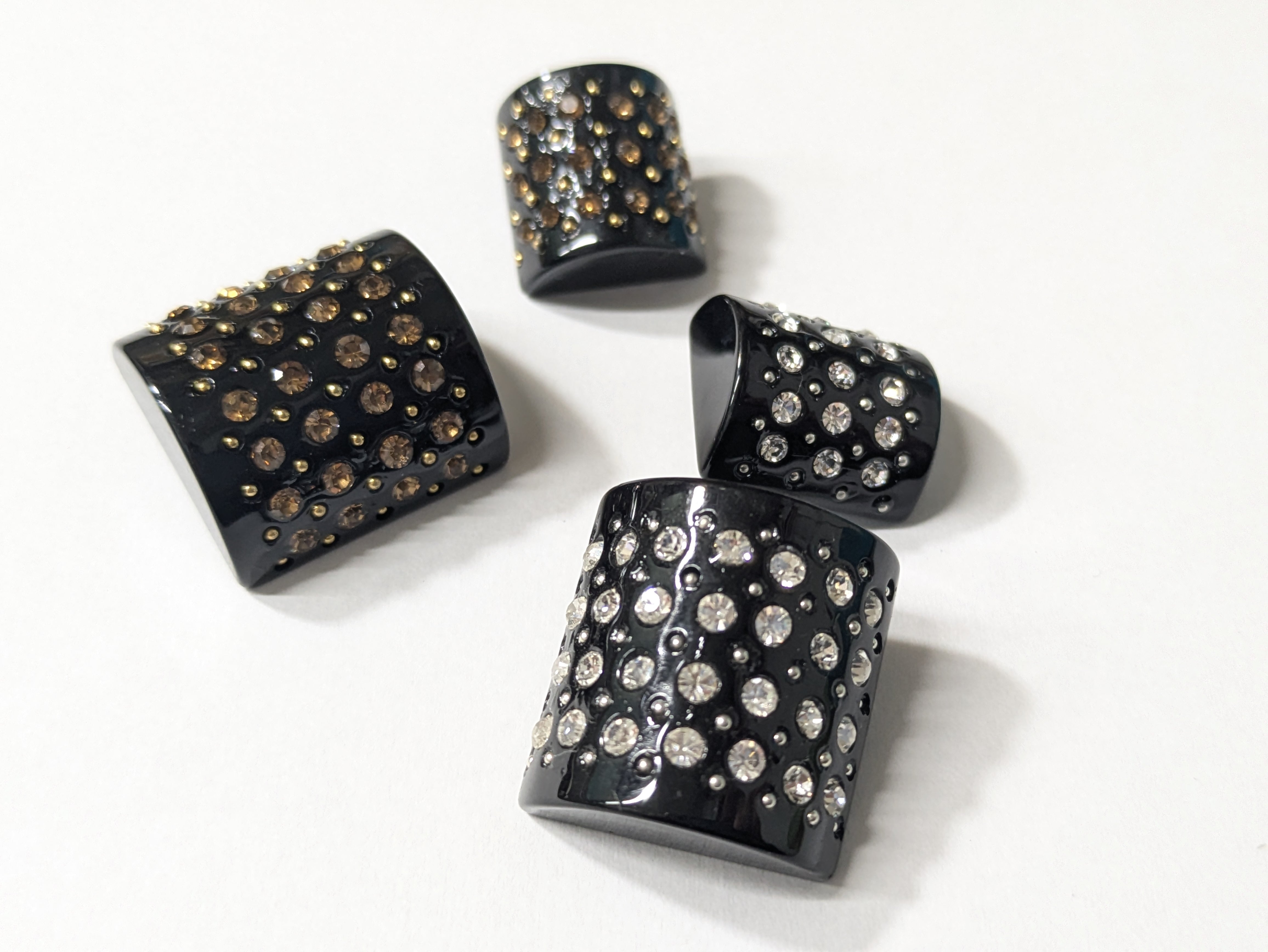 ※ユニークな形の半円柱デザインに、沢山のビジューがあしらわれたVintage buttonです。どの角度から見ても輝きを放ち、お洋服やバッグに華やかなアクセントを与えます。