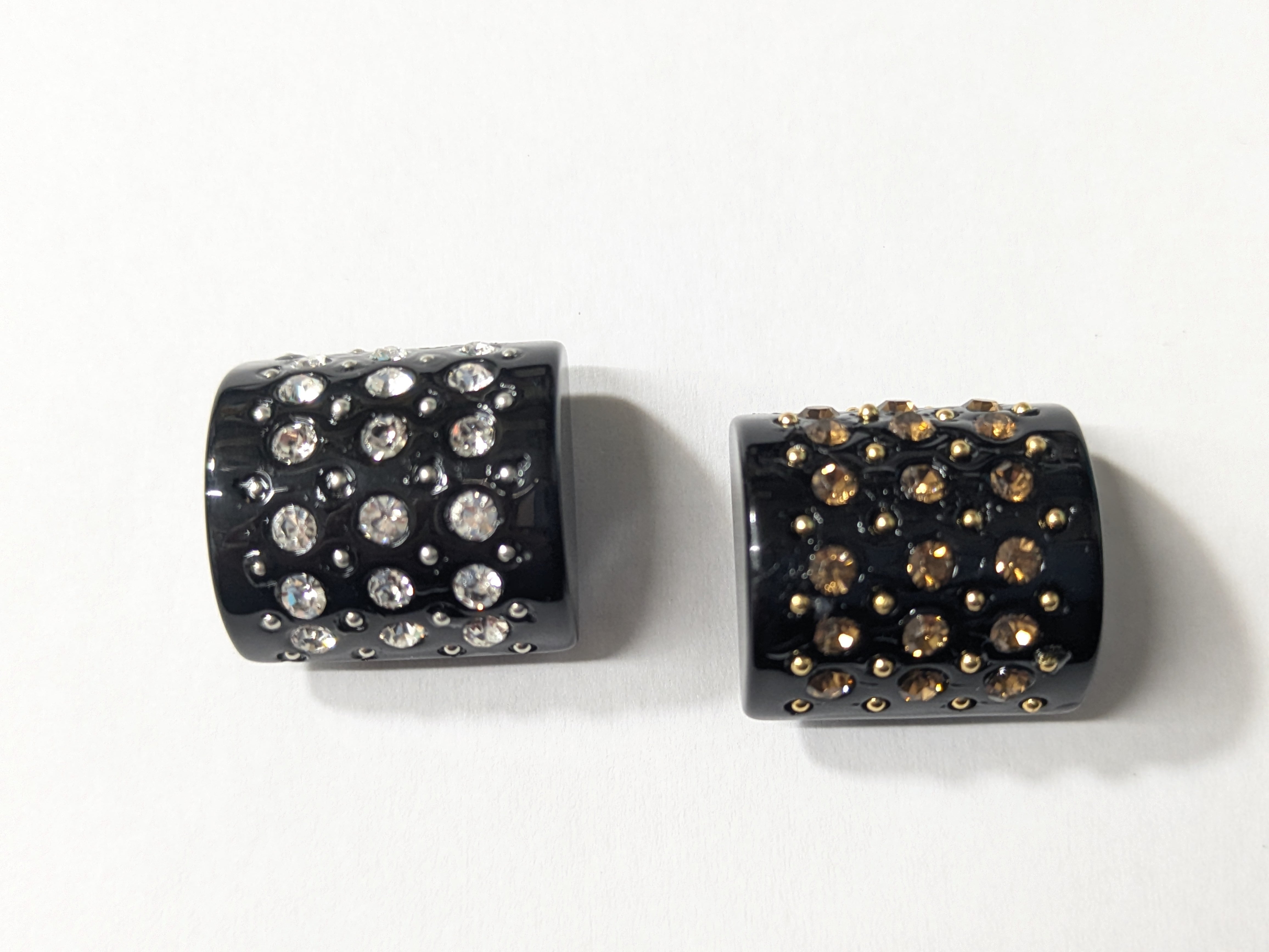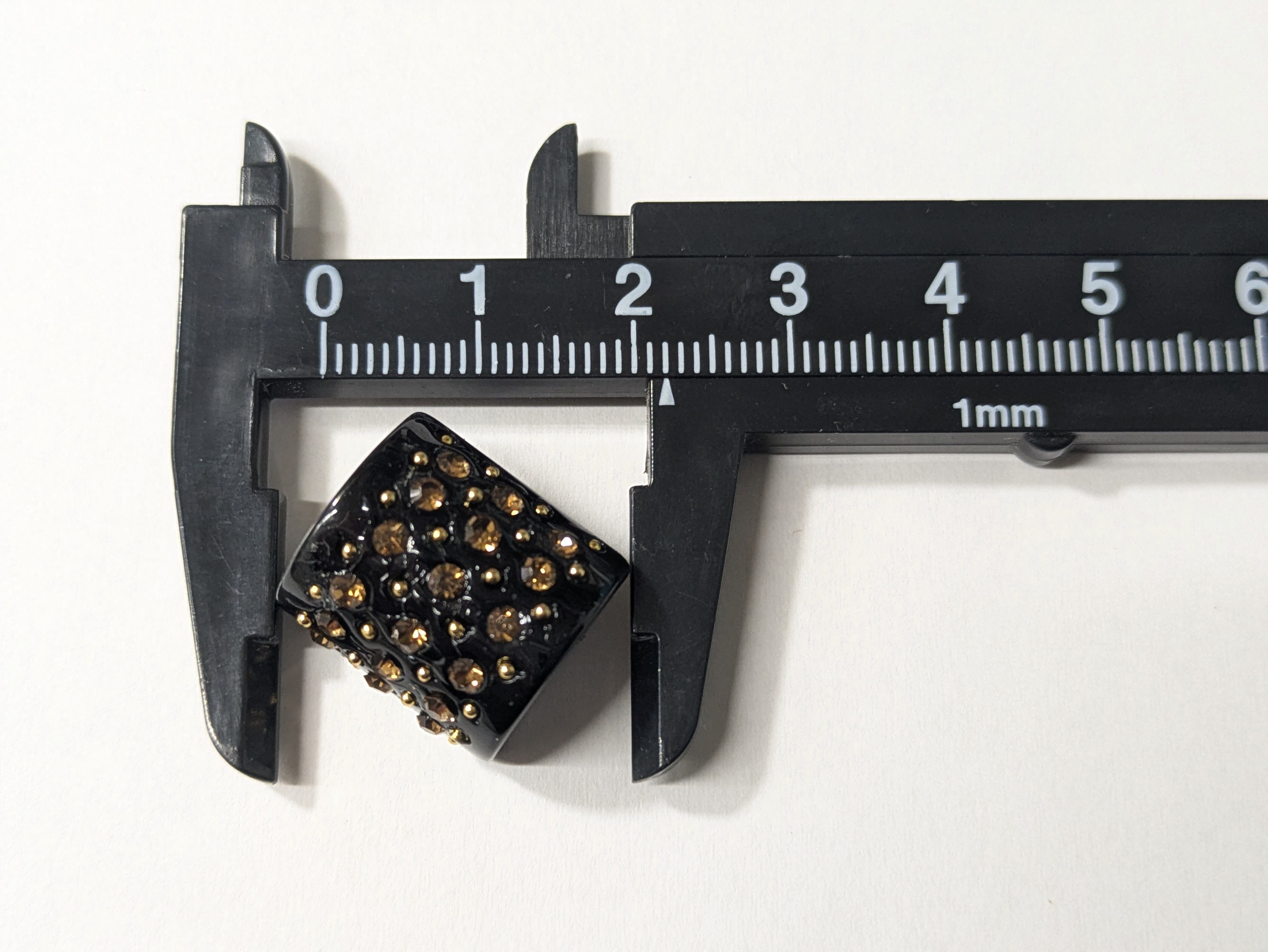 ※ユニークな形の半円柱デザインに、沢山のビジューがあしらわれたVintage buttonです。どの角度から見ても輝きを放ち、お洋服やバッグに華やかなアクセントを与えます。