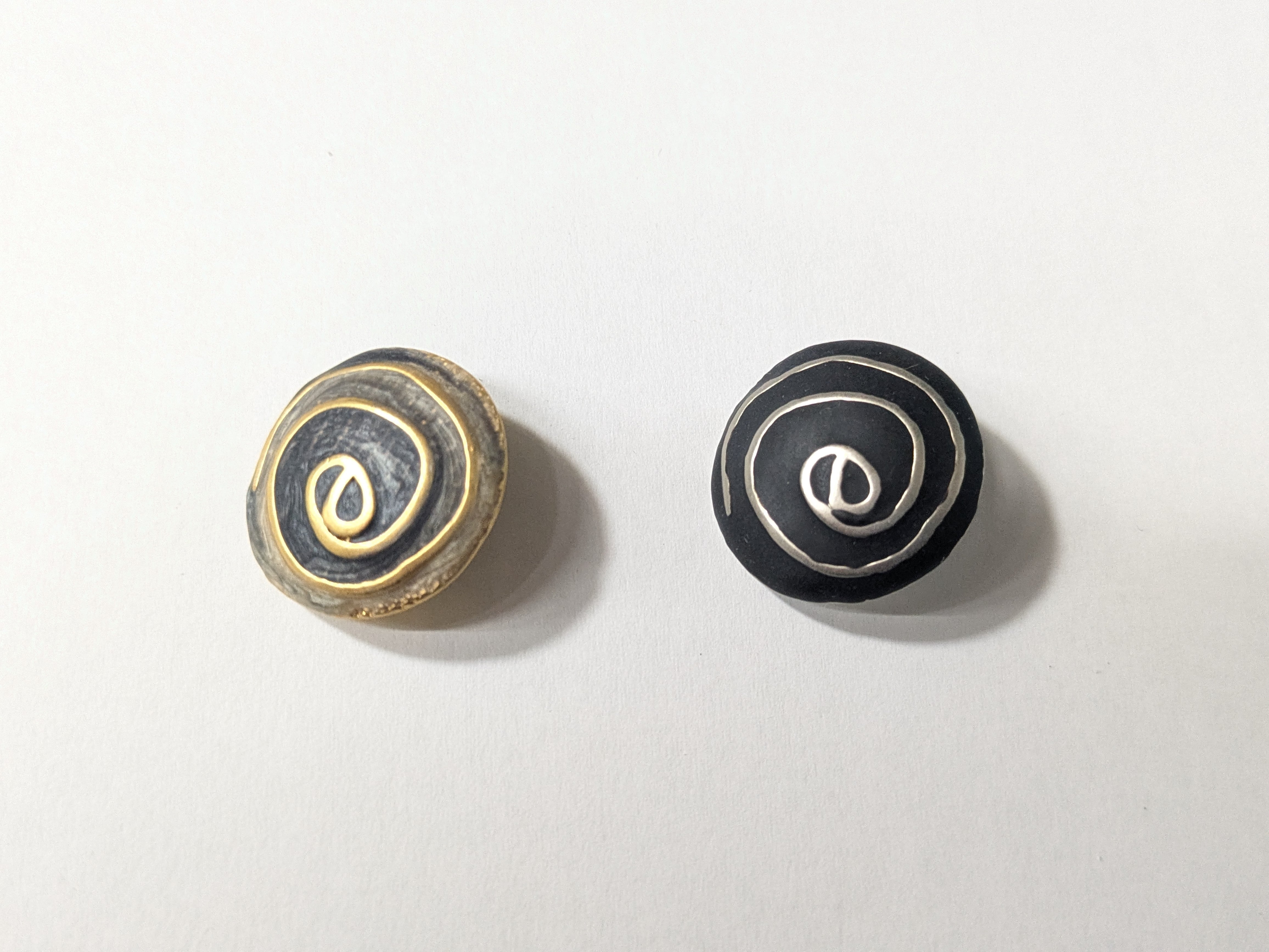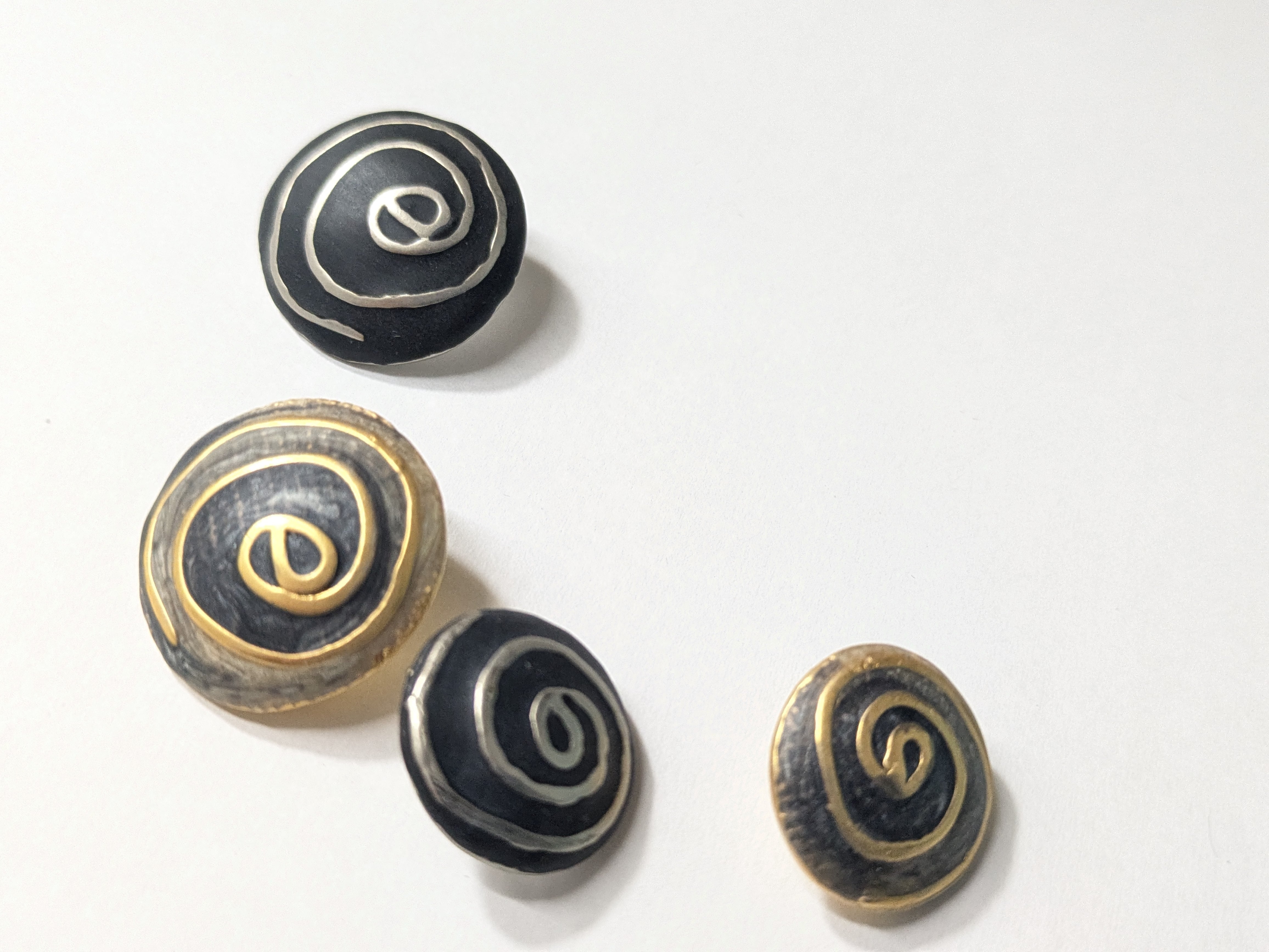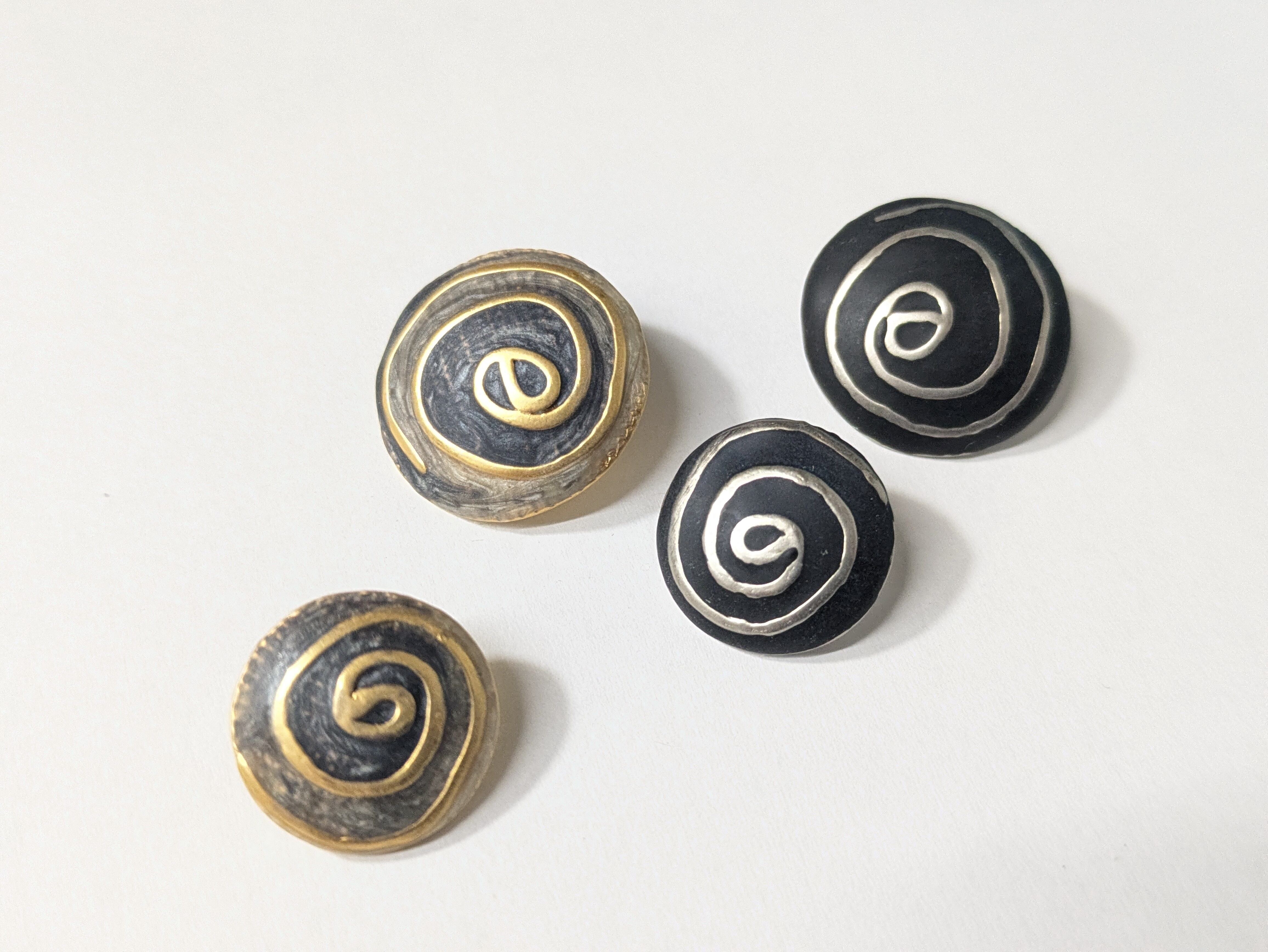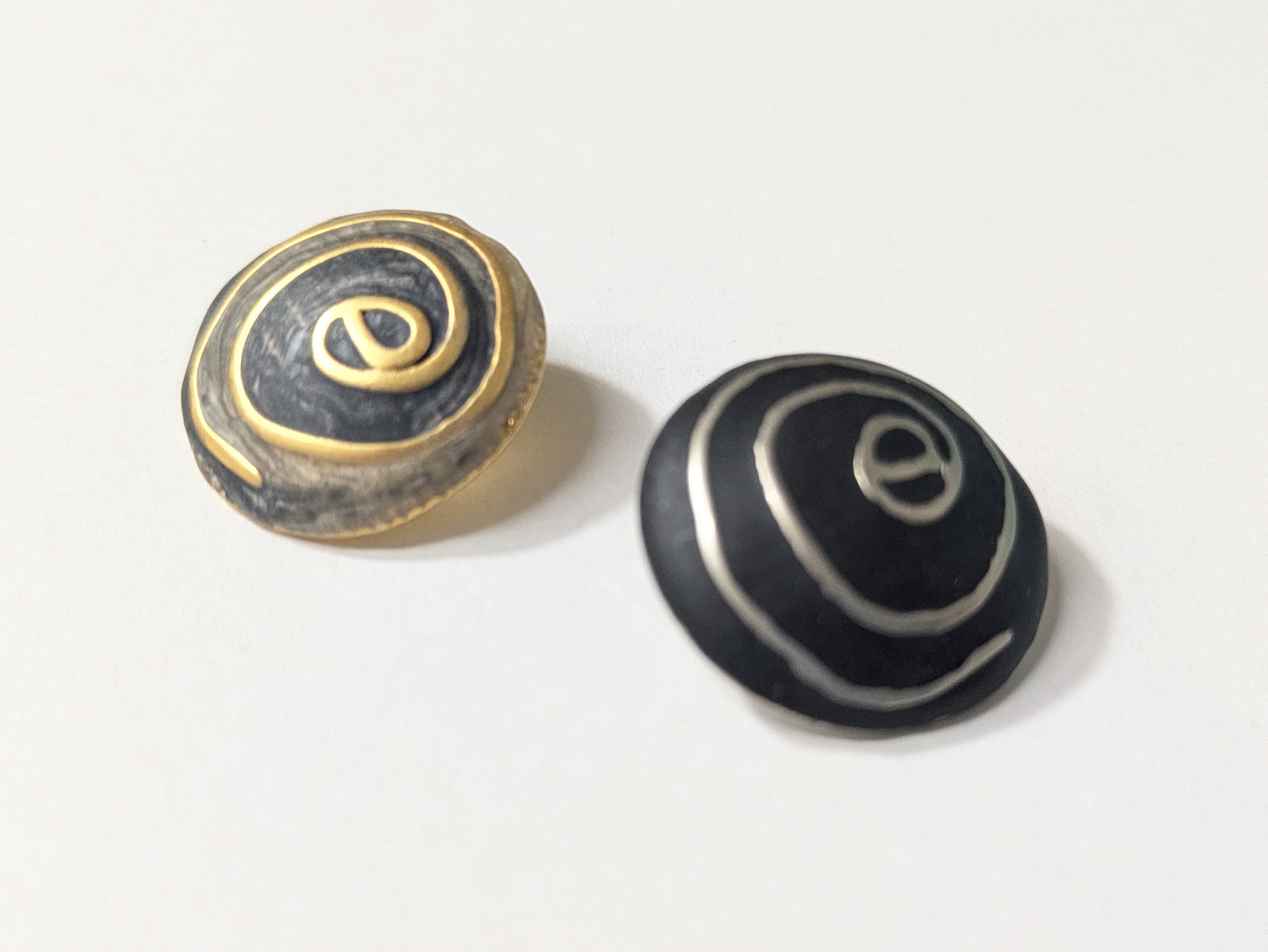 ※丸みがかったメタルボタンに渦巻状の模様が特徴のVintage buttonです。個性的なデザインながらも、洗練された雰囲気を持っており、さまざまなお洋服やバッグにおしゃれなアクセントを添えてくれます。