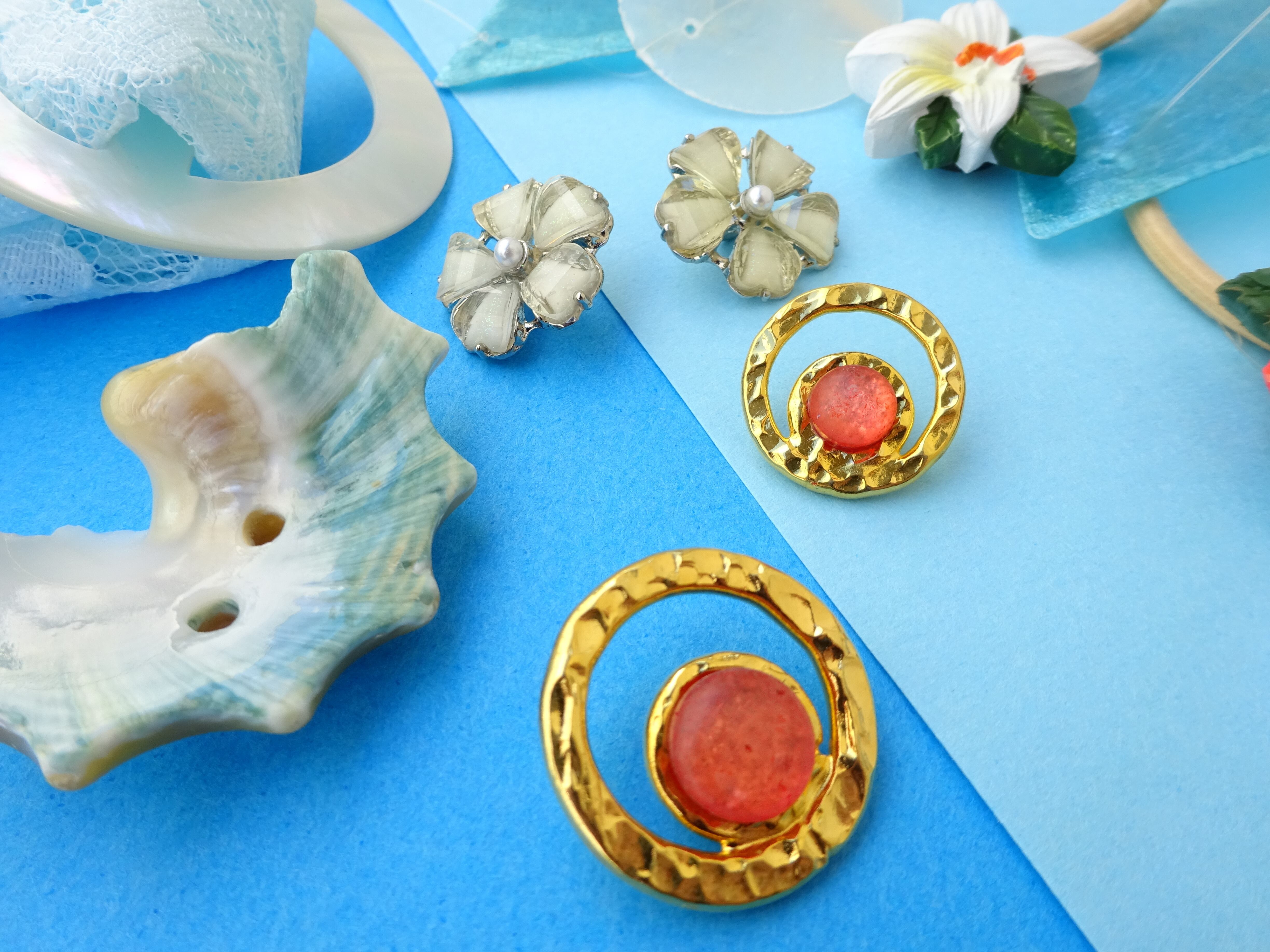※リングの表面はデコボコ模様になっており、内側のリングにはコーラルパーツがあしらわれています。まるで海辺の散歩道にいるようです☆
