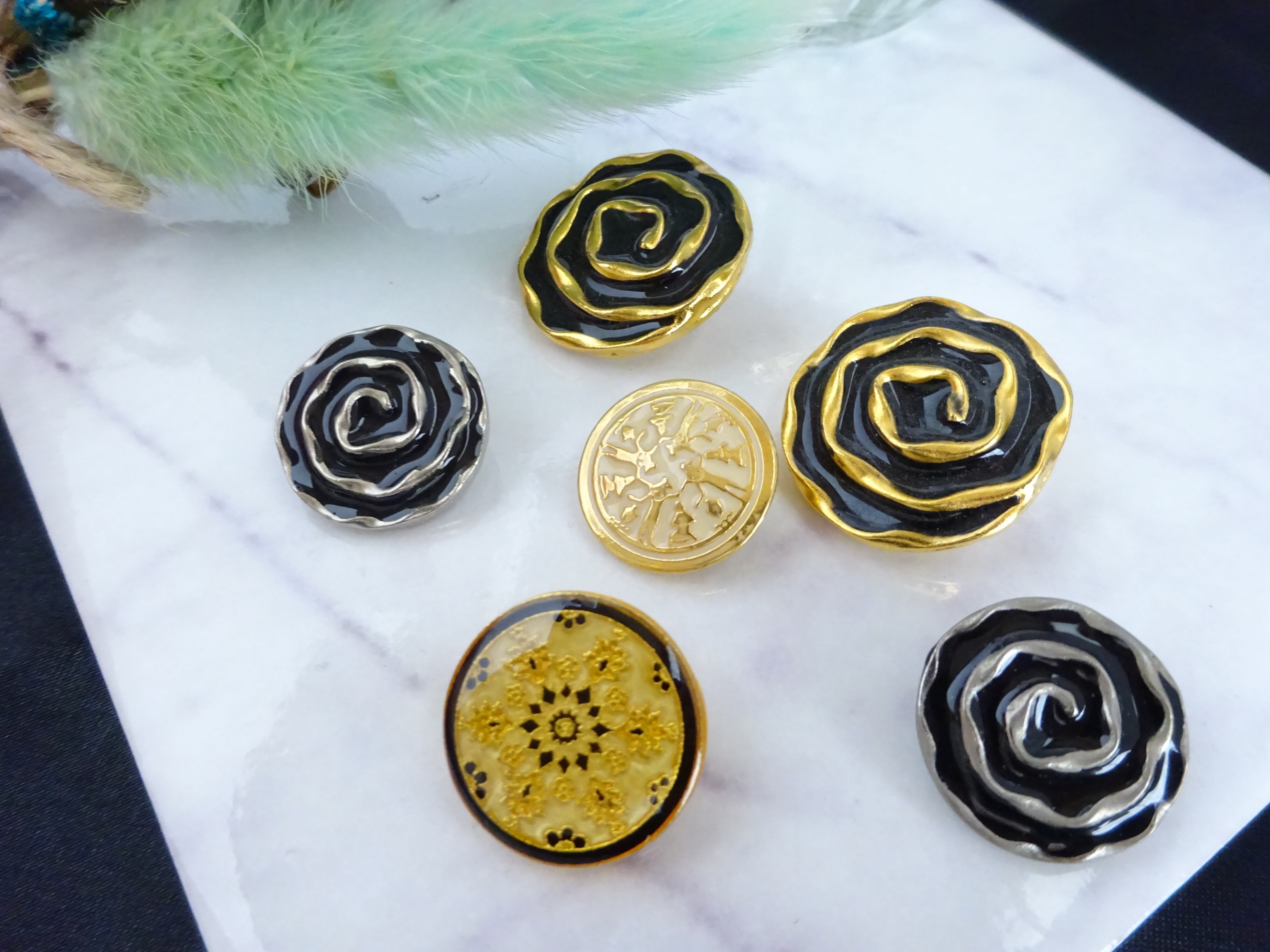 ※シルバーベースにブラックの渦巻きボタン。ブラック部分はエポキシ樹脂。波のような渦巻きがお花に見えたりしてインパクトがあります。
