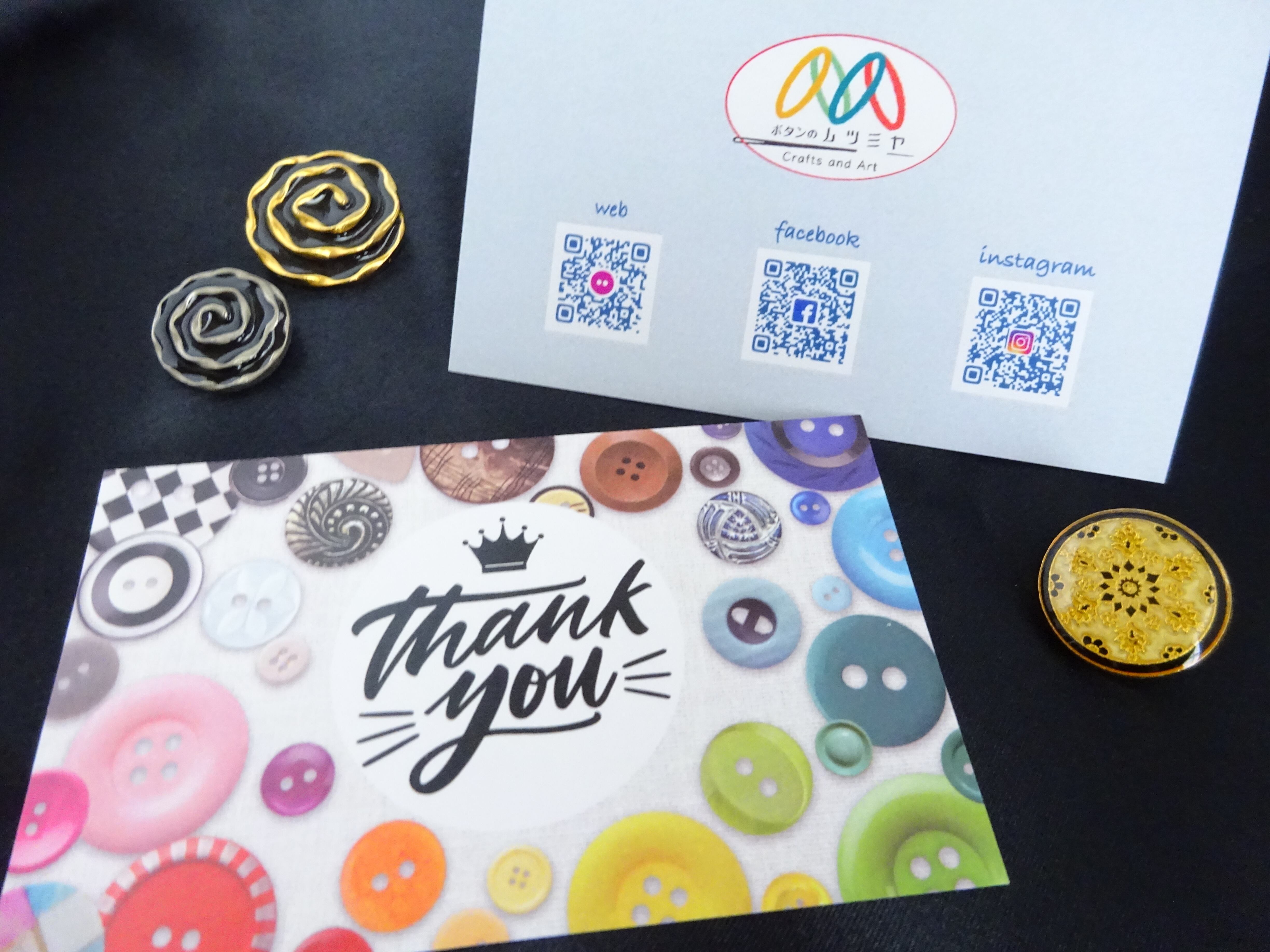 ※ゴールドベースにブラックの渦巻きボタン。ブラック部分はエポキシ樹脂。波のような渦巻きがお花に見えたりしてインパクトがあります。