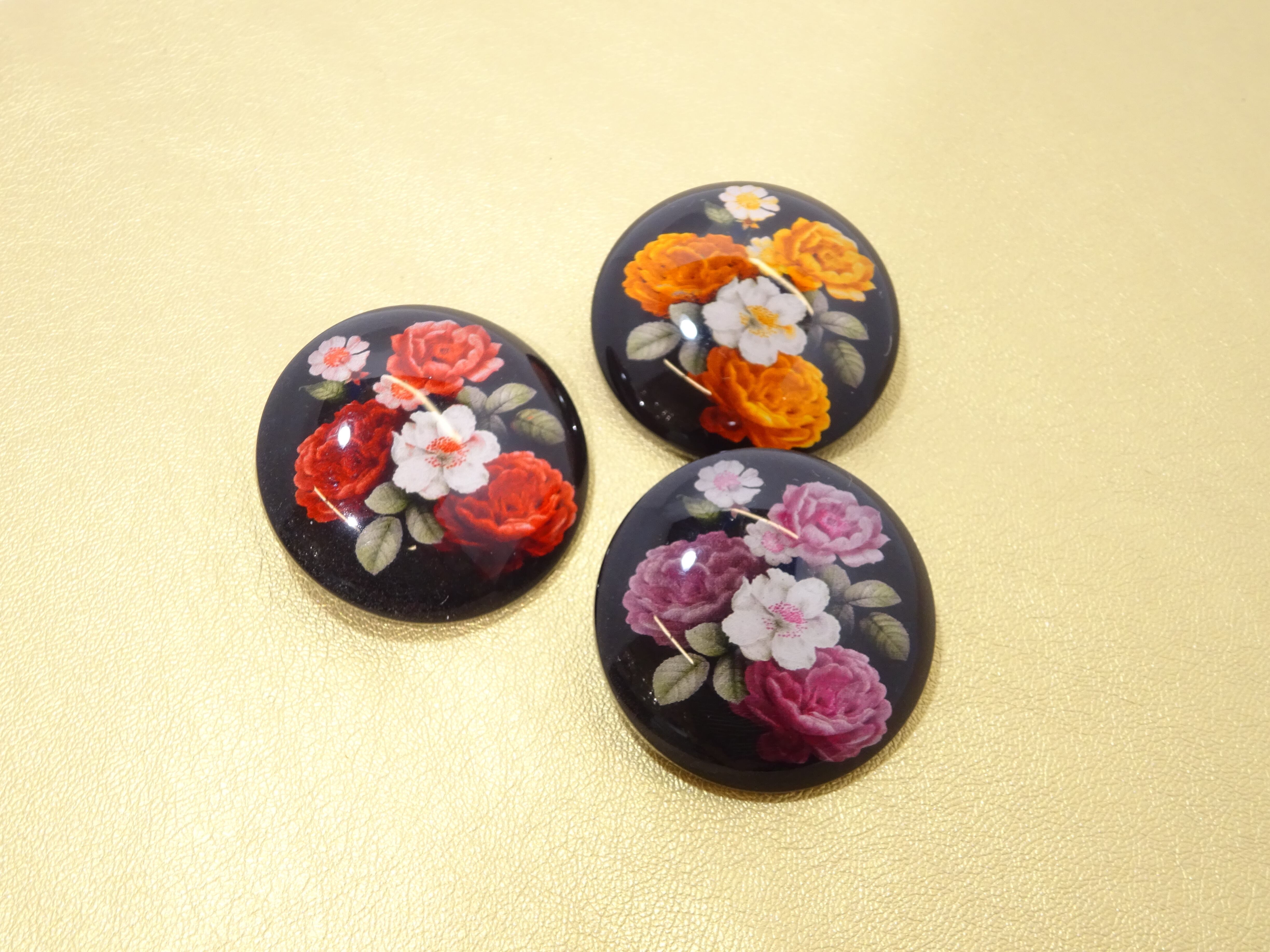 ※お花のプリントが鮮やかなボタン。並べてるだけで絵画のようです。34㎜なのでかなりインパクトがあります。