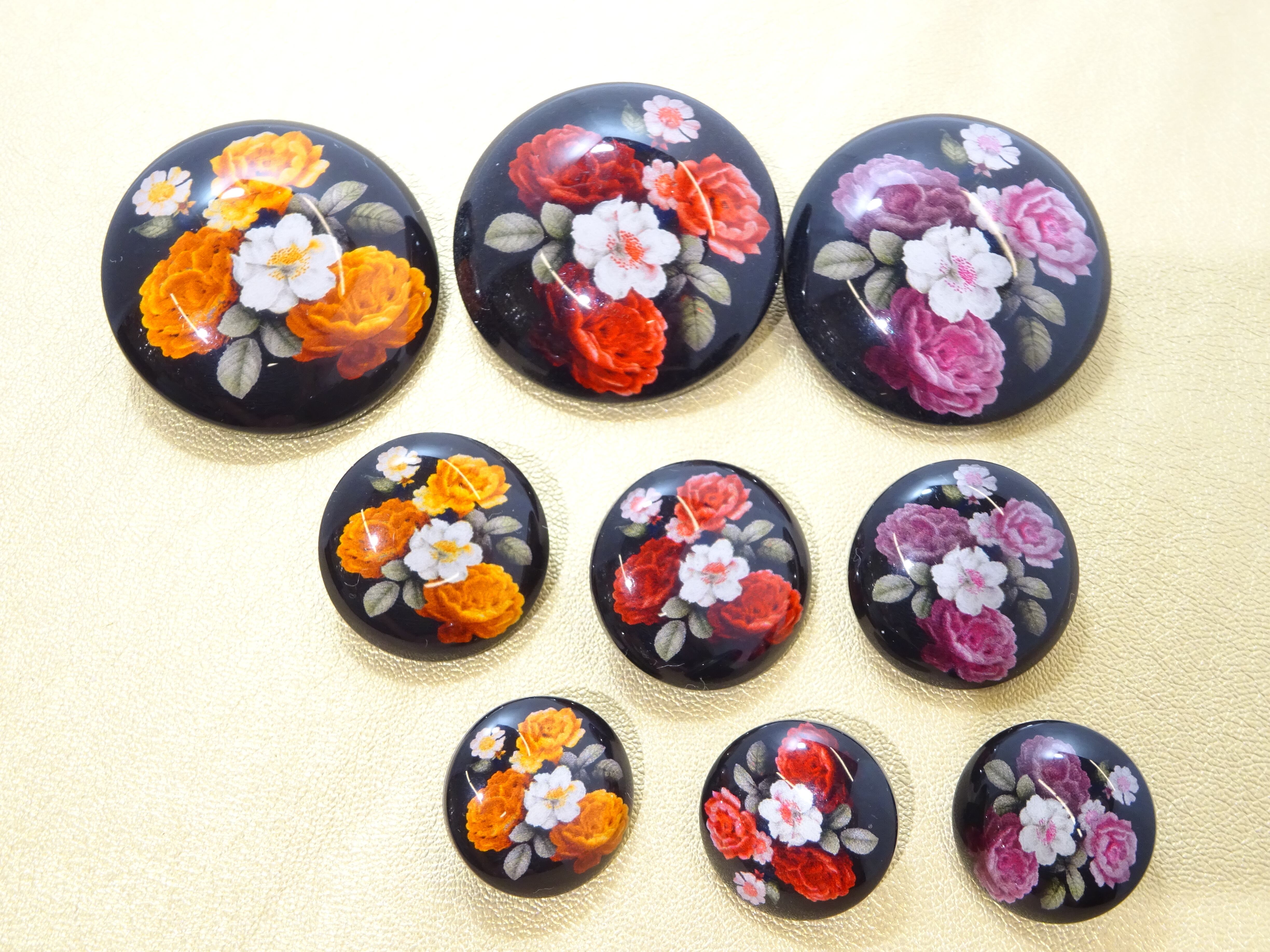 ※お花のプリントが鮮やかなボタン。並べてるだけで絵画のようです。