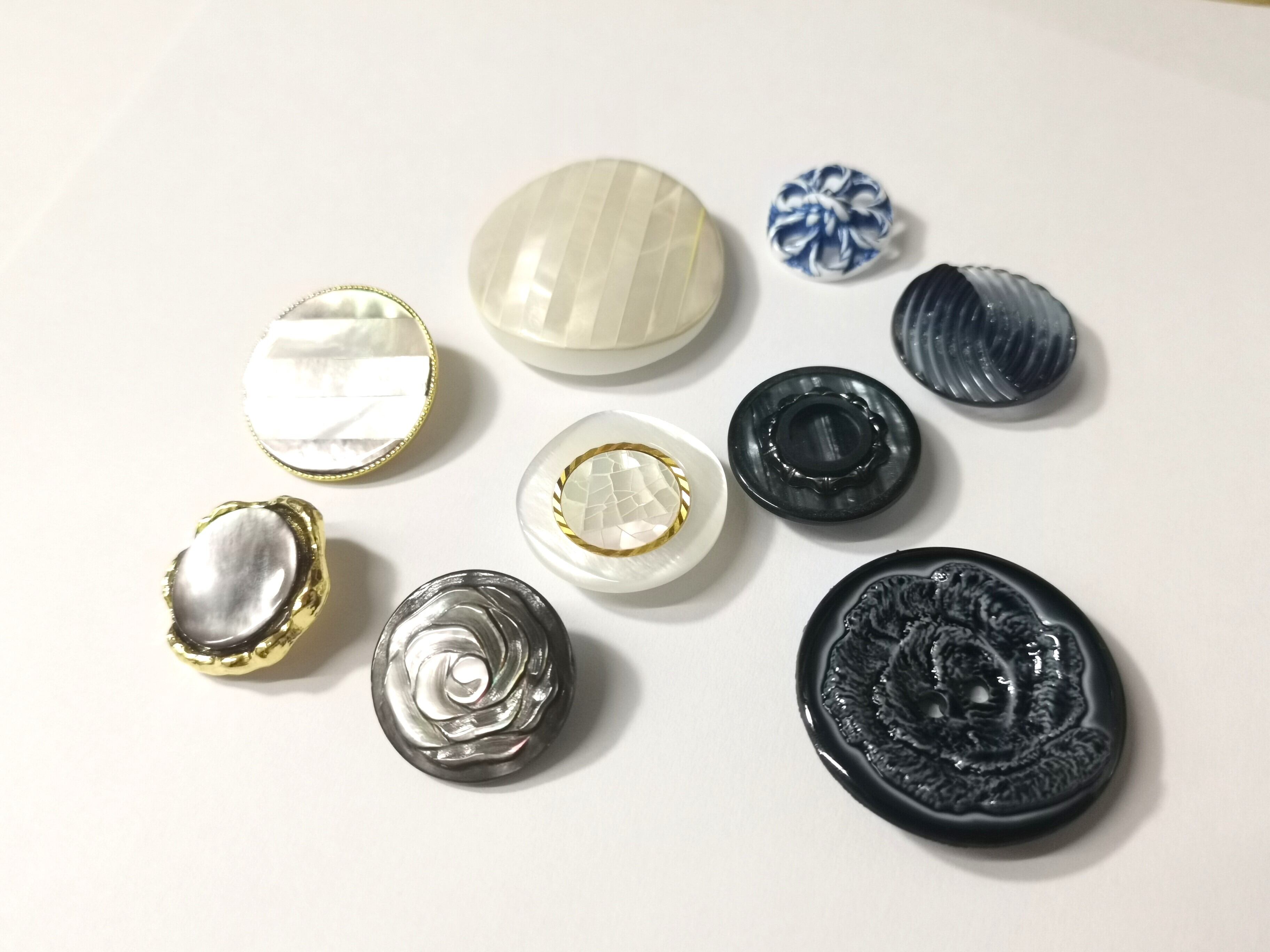 CATEGORYから「特集ボタン」→「7月のボタン(藍とシェル)」を選択していただくと、表示されてきます。